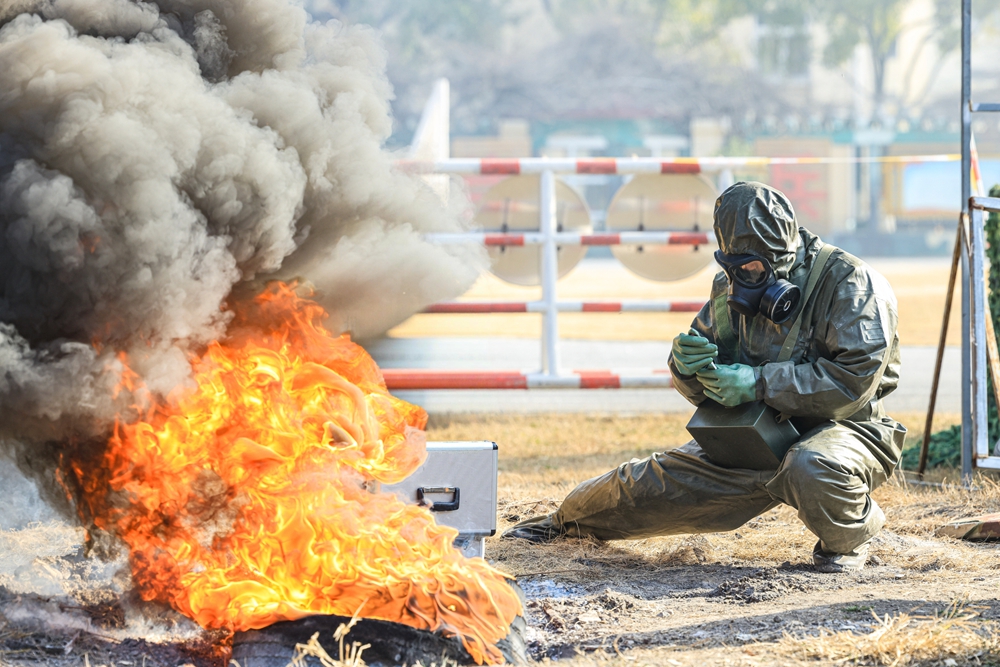 武警上海总队机动第一支队侦查员正在进行毒剂侦检。新华网 发