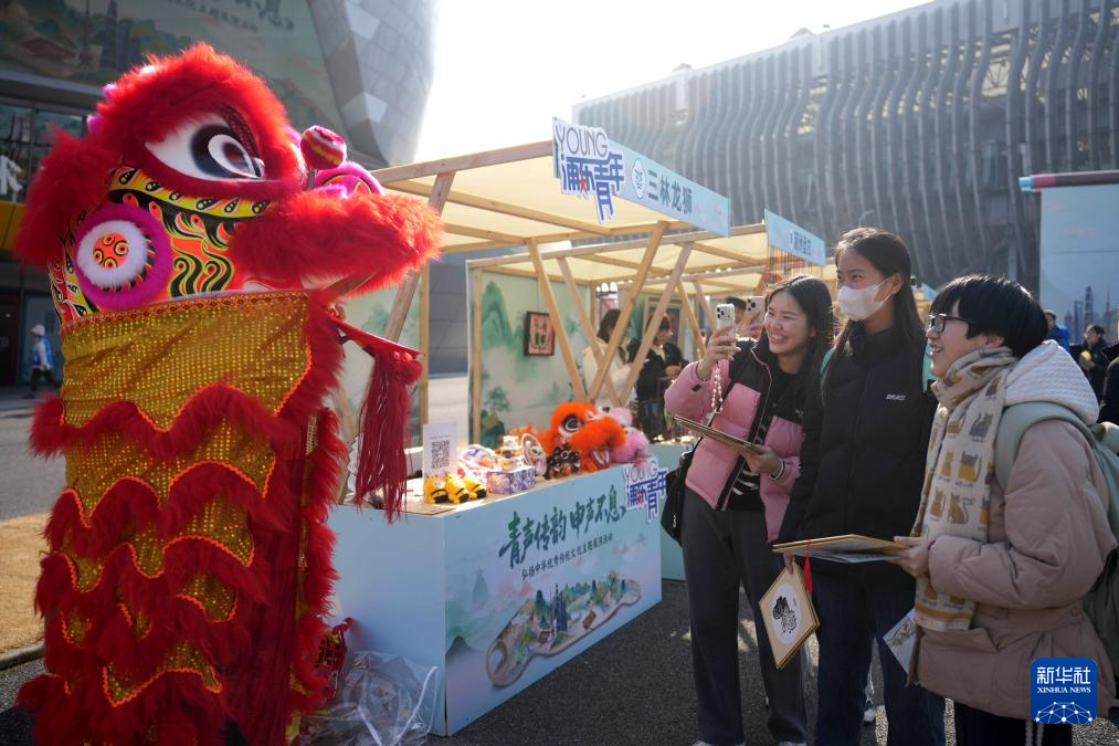 1月9日,观众在上海儿童艺术剧场外参观传统文化市集。